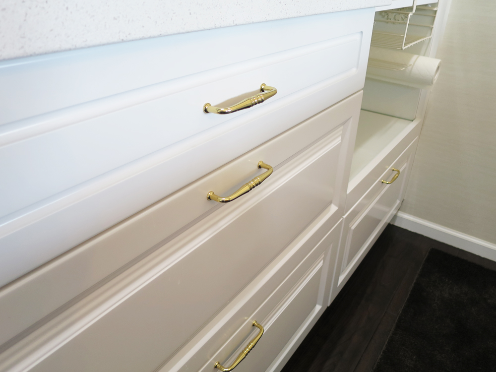 取っ手はゴールド系のハンドルとツマミを組み合わせました。
